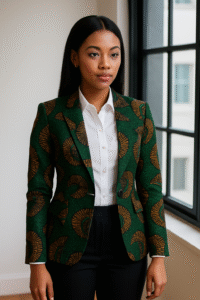 Looking professional doesn’t mean dressing plain. These African print styles are sharp, respectful, and UK-appropriate. 1. Ankara Blazer over White Shirt Pair with black trousers or a pencil skirt. Use subtle prints like dark green, brown, or navy Ankara. Looks professional without being loud. 2. Kente Midi Dress with Collar Choose a clean-cut Kente midi dress with a shirt collar and elbow-length sleeves. Wear with nude pumps and a leather tote. 3. Adire Shift Dress with Jacket A shift dress in muted Adire print keeps you formal. Add a short structured jacket and flats. 4. Ankara Skirt + White Blouse Go with a knee-length skirt in calm Ankara prints. Tuck in a crisp white shirt and add a belt. 5. Subtle Aso-Oke Top and Black Trousers A plain Aso-Oke blouse with minimal pattern works well with tailored black pants. Stick to soft greys, lilac, or teal. 6. Monochrome Ankara Tunic Use black-and-white Ankara fabric for a tunic with sharp lines. Pair with black leggings or trousers. 📲 All tailored in the UK by Moji. Equity Fashion helps African women in the UK dress right for job interviews with 6 tailored print outfits that balance culture and professionalism. All designs by Moji. Orders via WhatsApp.