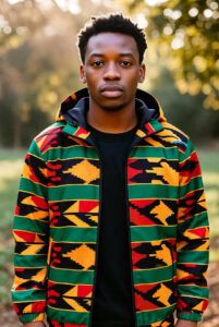 Windbreakers with African prints are a top 2025 fashion trend in North East England, blending functional sportswear with vibrant cultural flair for Newcastle’s active streets and Durham’s stylish outings. Picture yourself braving the Quayside breeze in a custom Equity Fashion Ankara windbreaker, its bold geometric patterns catching the wind, or turning heads at a Middlesbrough market in a Kente windbreaker that fuses heritage with modern utility.